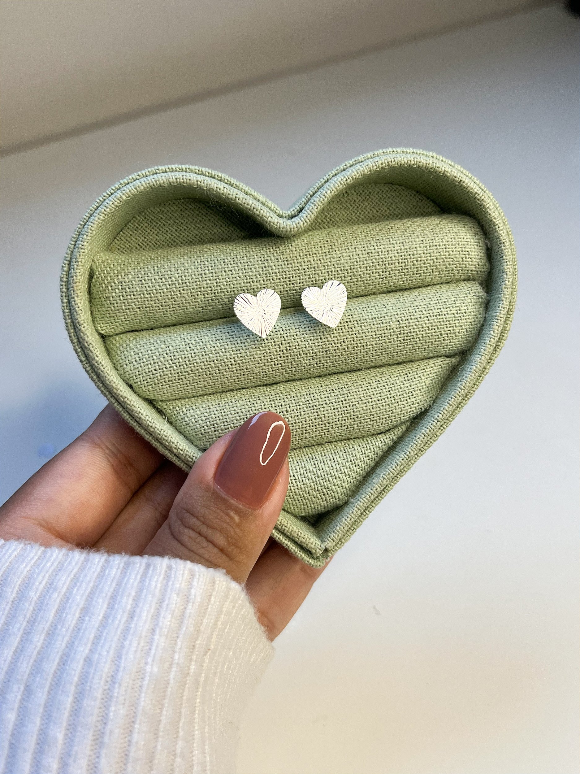 Brinco coração texturizado