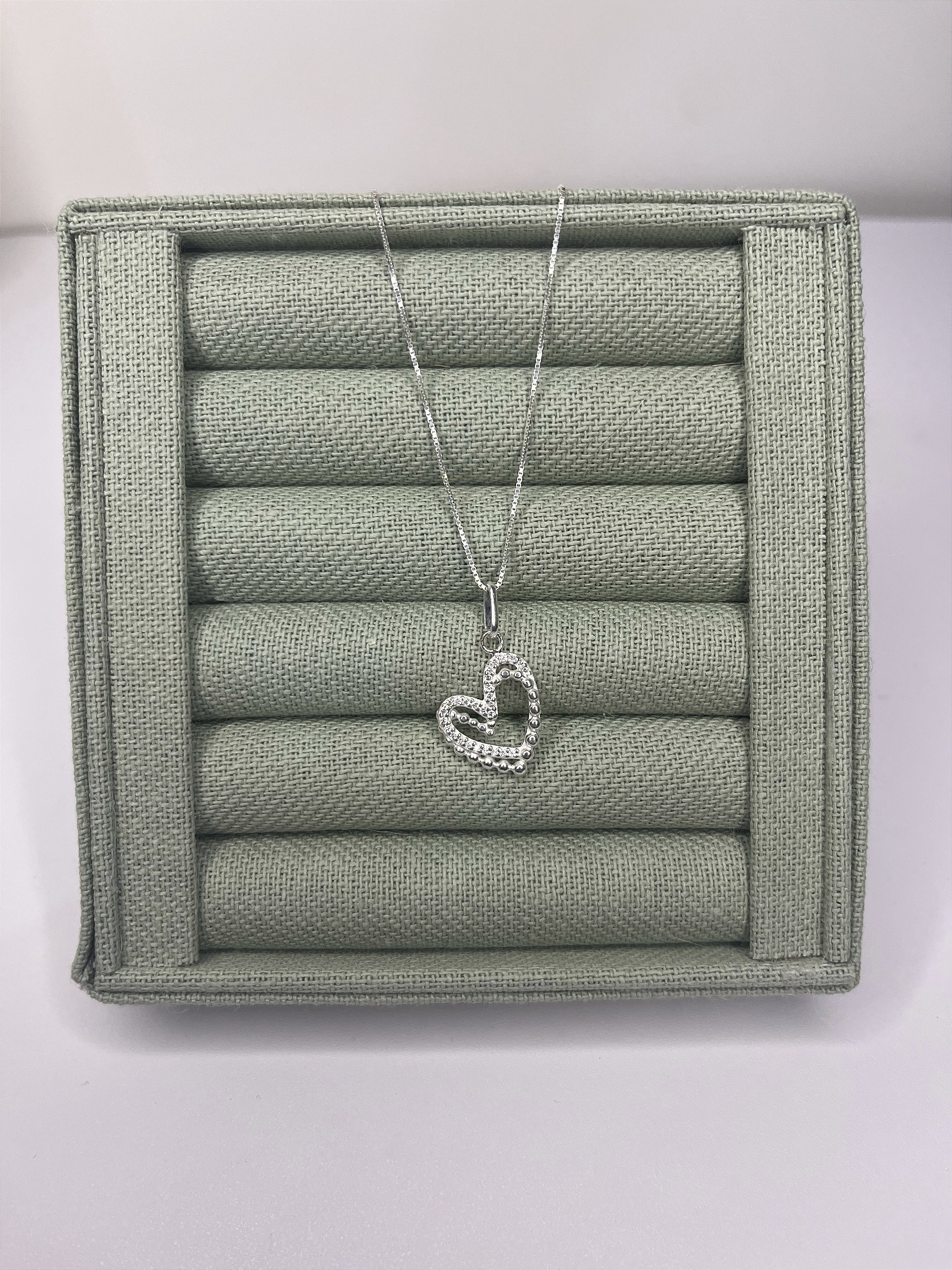 Colar Dois Corações Zirconias e Bolinhas entrelaçados