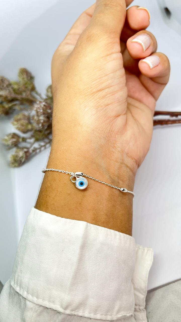 Pulseira Olho Grego + Bolinhas Ovais em Prata 925